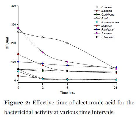 Figure 2:Effective time of alectoronic acid for the bactericidal activity at various time intervals.
